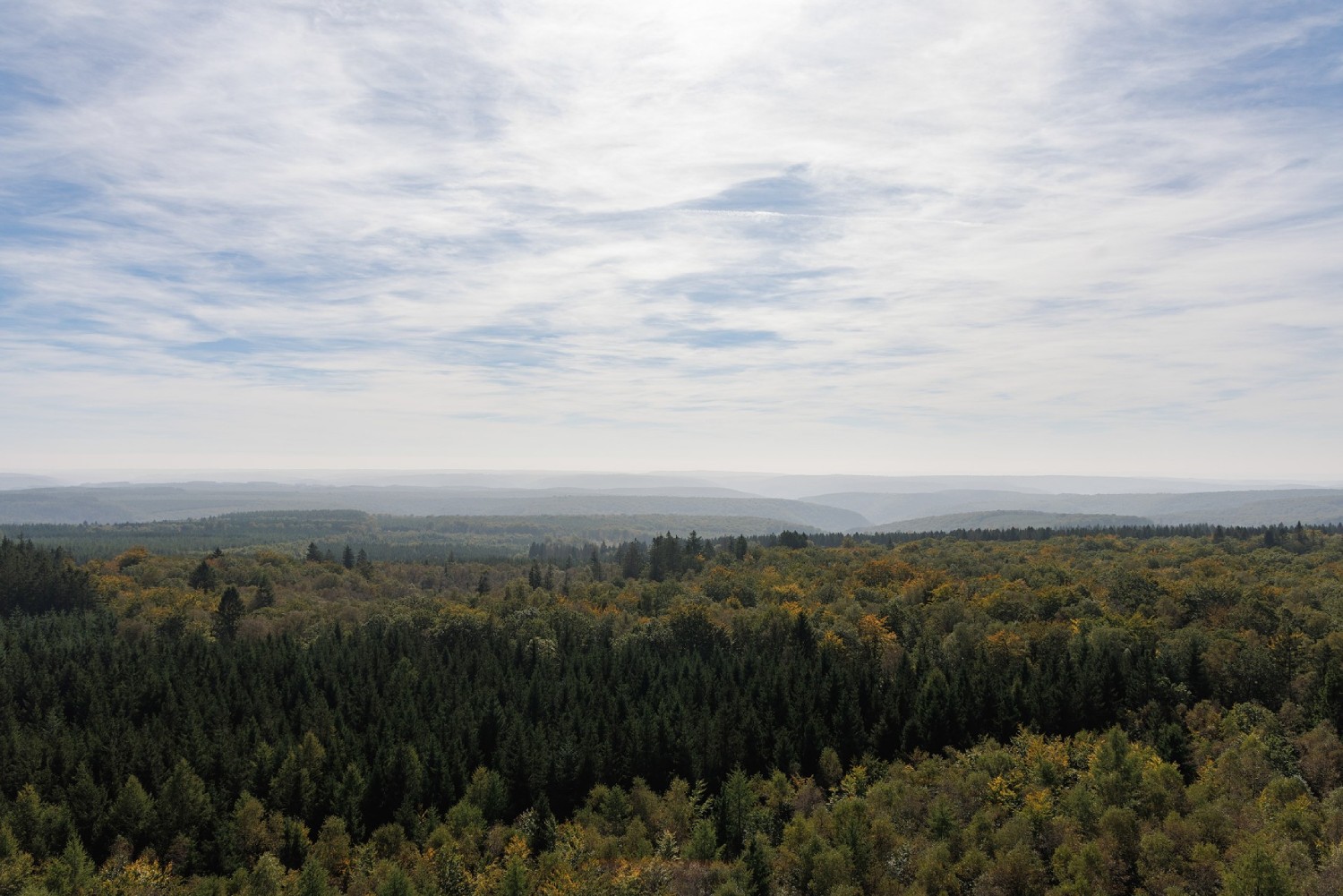 La montée se fait par un escalier de plus de 200 marches qui s’élève en spirale autour de l’ossature. Plusieurs plateformes permettent de reprendre son souffle et de profiter des premières vues sur la canopée. Au sommet, la vue à 360° s’ouvre sur un vaste territoire boisé, révélant la profondeur des forêts ardennaises et, par temps clair, les reliefs environnants jusqu’aux crêtes françaises.