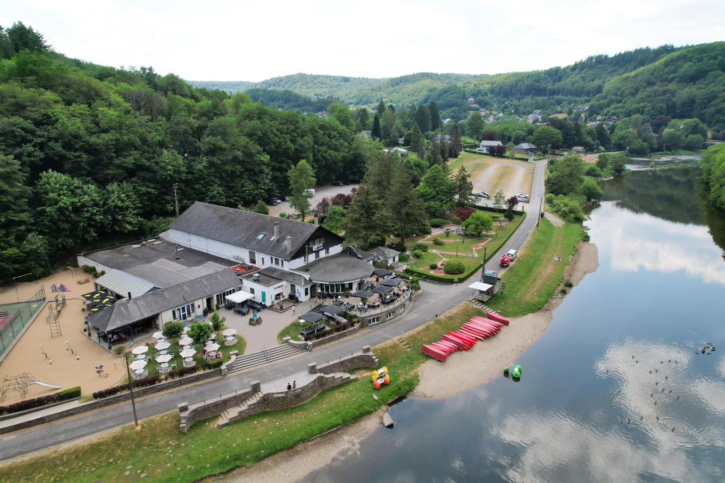Pour une pause détente, la terrasse de la brasserie offre une vue imprenable sur la Semois, idéale pour savourer un repas ou une boisson tout en profitant du paysage. Les groupes bénéficient d’infrastructures adaptées, avec des formules pour organiser des anniversaires (3-14 ans) ou des sorties d’équipe.
