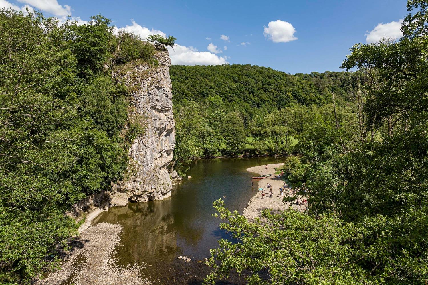 La Roche aux Corneilles, aussi appelée Roche Hiernaux, se dresse à Bomal, dans la province de Luxembourg, en Belgique. Ce rocher calcaire imposant domine l’Ourthe sur 35 mètres, avec une orientation sud-est qui profite d’un ensoleillement agréable, au cœur d’un cadre verdoyant.