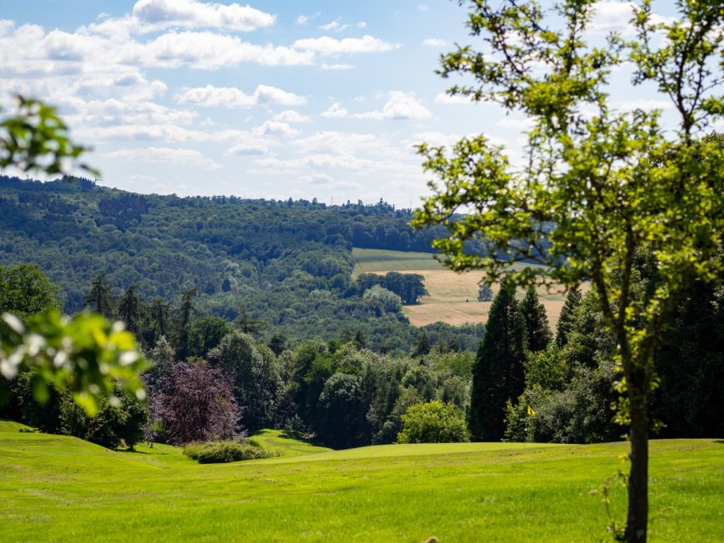 Envie de jouer dans un cadre différent des golfs classiques urbains ou de plaine ? Direction le Royal Golf Club du Château Royal d’Ardenne. Le parcours de 18 trous, par 72 pour 5 636 mètres, alterne longs par 5, par 4 stratégiques et par 3 techniques. Les fairways suivent le relief naturel, avec des montées exigeantes, des mises en jeu en descente et des greens aux pentes marquées qui demandent une bonne lecture. Ici, on marche, on gère son sac et son souffle, autant que son swing.