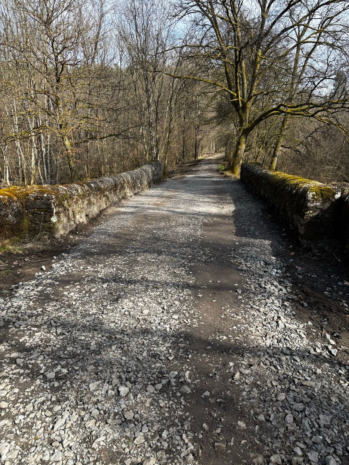 Les chemins deviennent ensuite plus sinueux, bordés de ruisseaux et de zones humides jusqu’à Le Houssi, avant de grimper vers Hamaide puis Bestin, sur de larges pistes forestières.