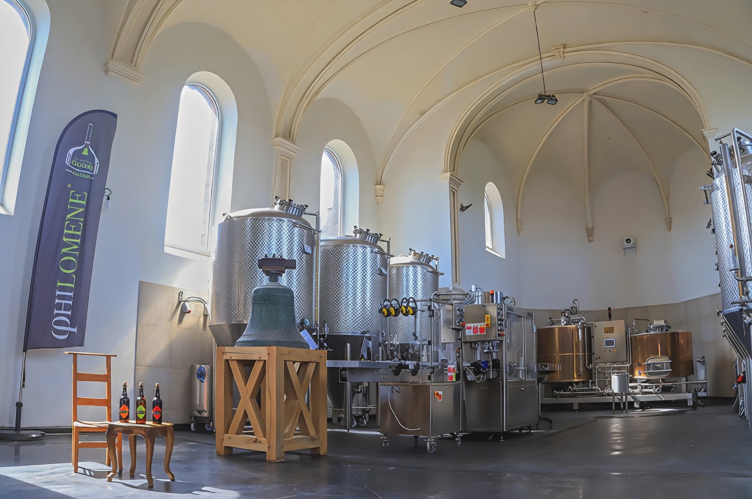 Vanaf het begin was het doel om er op zelfstandige en ambachtelijke wijze de bieren van het merk Philomène te brouwen. In de herbestemde kapel bevinden zich vandaag de brouwinstallaties, de bottellijn en een verkooppunt.