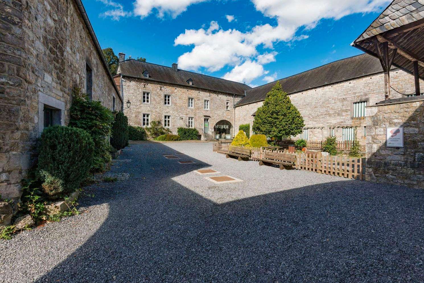 Aan de voet van het domein liggen de ruïnes van het Château Fort de Logne, ooit de burcht van de beruchte Sanglier des Ardennes. Tijdens het bezoek zie je resten van het woongebouw, kazematten, een barbacane en een indrukwekkende waterput van 56 meter diep. Vanaf de bovenste binnenplaats kijk je uit over de Ardense heuvels richting de Condroz. Voor gezinnen is er ook de speurtocht “La Gatte d’Or”, die het kasteel op een speelse manier ontsluit.