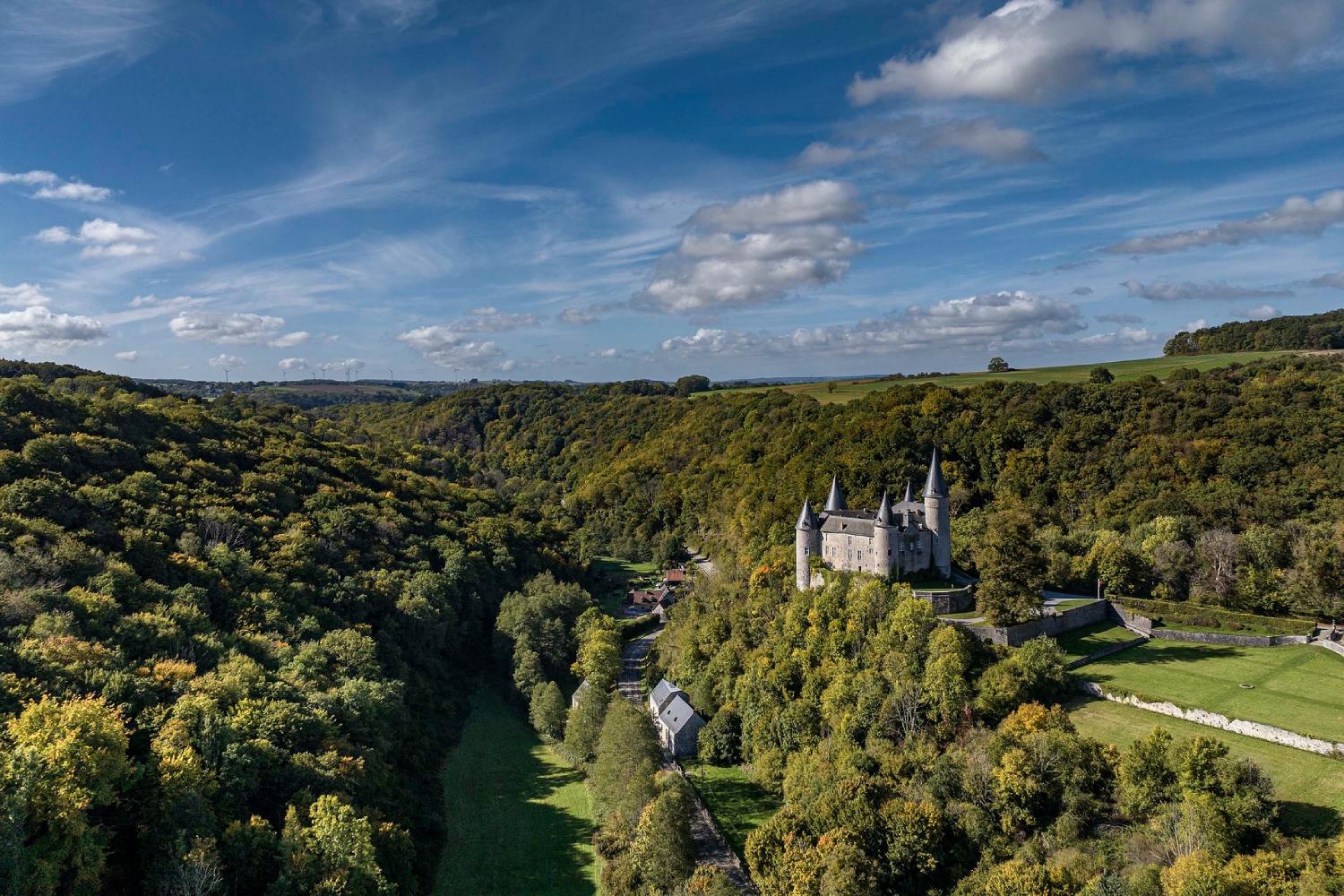 Hoog boven Celles ligt het Kasteel van Vêves, een plek met een lange geschiedenis én een aanbod dat verschillende doelgroepen aanspreekt. De geschiedenis van het kasteel gaat terug tot de zevende eeuw. Het silhouet dat U vandaag ziet, is vooral gevormd in de vijftiende eeuw en later aangepast tijdens de renaissance en onder Lodewijk XV. De onregelmatige driehoekige vorm, met vier grote torens en twee kleinere, maakt het geheel meteen herkenbaar en nodigt uit om op ontdekking te gaan.