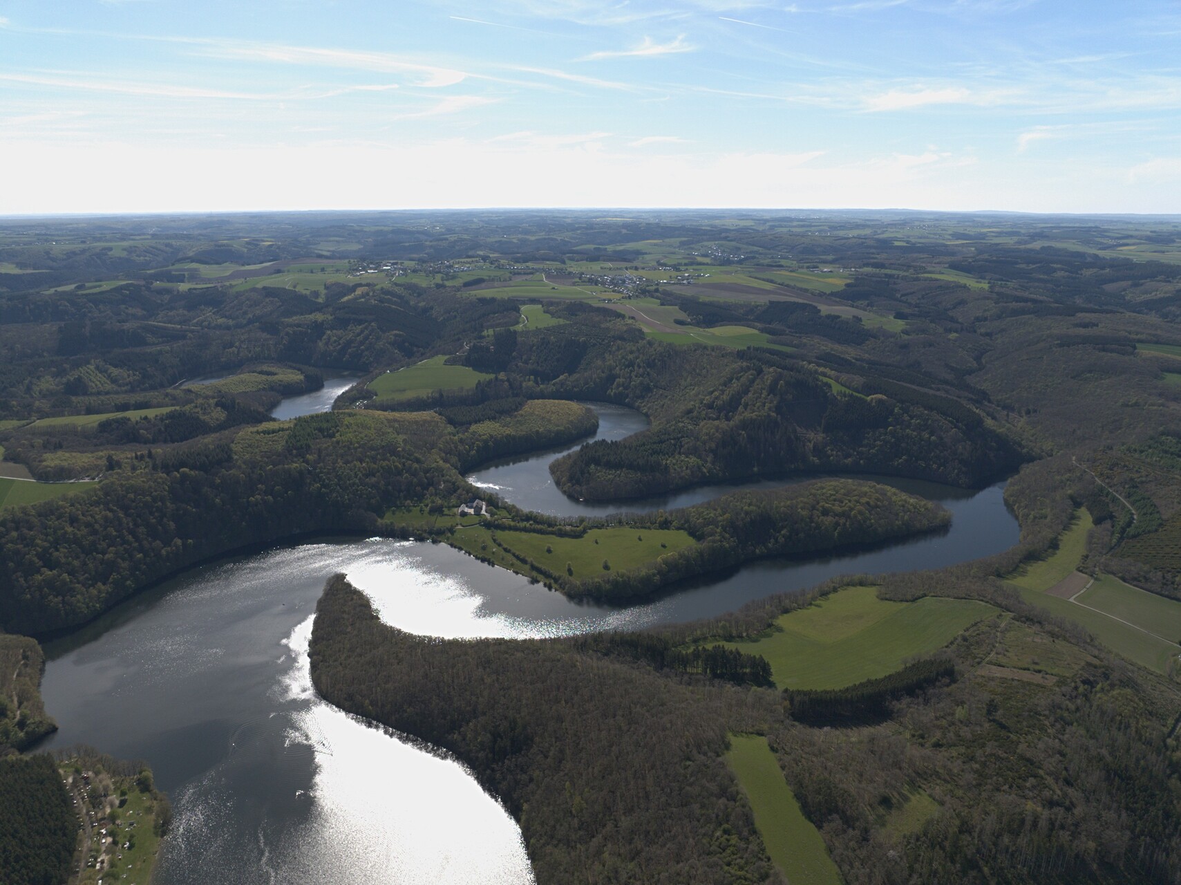 Een meer toegankelijke, maar nog steeds sportieve optie is het volgen van het westelijke deel van de lus, rond Liefrange, Pont Misère, Burfelt en Lultzhausen. Deze wandeling van ongeveer 26,85 km laat u kennismaken met enkele van de mooiste panorama’s van het meer. Een absoluut hoogtepunt is de drijvende voetgangersbrug tussen Liefrange en Lultzhausen, die het water oversteekt en een uniek perspectief biedt, vlak boven het meer. Deze brug maakt het ook mogelijk om de route in te korten of aan te passen.